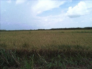 Pictured is a rice crop in two stages: The picture at left is a young rice crop still in the growth stage, while at right is a crop ready for harvest.